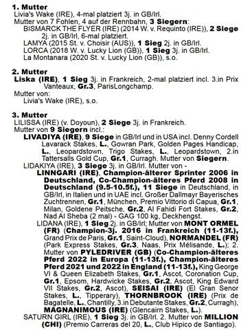 Die Sächsiche Galoppunion ist Besitzer der Stute Quiara. Quiara v. Lucky Lion wurde 2021 geboren und entstammt der bekannten Q-Linie aus dem Gestüt Fährhof. Ihre 2. Mutter Quebra war Gr. II platziert. Das Gestüt Graditz hat Quebra im Jahr 2015 tragend von Pastorius vom Gestüt Fährhof erworben. Mit drei Stuten etabliert sich diese Familie nun im Gestüt Graditz. Quiara ist im Training bei Andreas Wöhler.